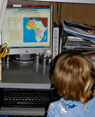 We are working hard and learning a lot through our lapbook on Rwanda. We “gave” our son a sponsored child (through World Vision) for Christmas. The little boy we are sponsoring is P’s age and P is REALLY enjoying learning all about Albert and his country. It has been a wonderful experience for us all. One of the really neat things I found to aid our study of Africa is this great online software. Here’s P playing the Africa game, learning the names of the countries!