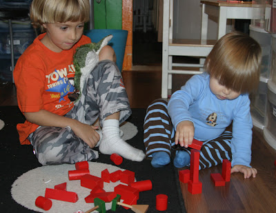Lots of block building, and play with our Melissa and Doug Toys