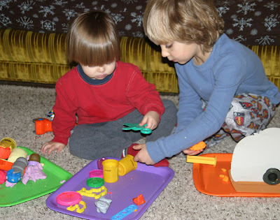 This morning, K brought me the play doh and said “ball” meaning he wanted me to make balls out of the play doh for him…we did and played for awhile, working on colors, shapes and most of all…fun.