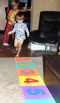 Then we went on to crazy floor play with our Hopscotch Mat (Foam), having a blast counting and being nuts…