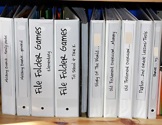 - File Folders games/Matching Boards (both K and P’s are in a big 3 inch one now, probably will have to divide them soon)