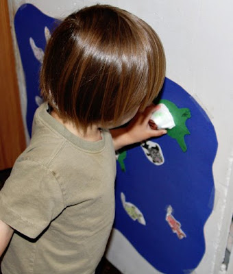 The next day we read the books again (and again, many other times, like I said he really liked these books a lot!)and added our turtles to our pond…