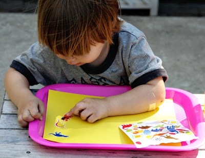 We began our week with school outside, he chose dino stickers first…