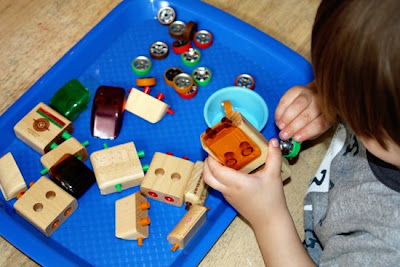 He LOVED this activity-Qtips into the parm container. He even went and got a bowl and dumped them into it and served us our spaghetti!!!