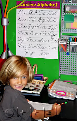 Pac Man LOVED his new cursive chart (which also came with a manuscript chart—for ONE dollar!!!)