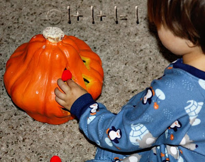 We love talking about Jesus being the light inside of us during the month of October. Therefore we have tons of Jack O Lanterns around. We focus entirely on the idea of God scooping out our yuckies and putting His light inside of us to glow for the world to see. We played a few games with one of our pumpkins…