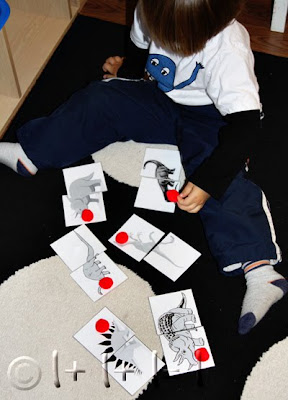 Of course I made him a dinosaur Tot Pack, which will be available for you soon ;), he loved these color matching cards…