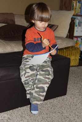 I bought Krash a monster notebook and pencil from the dollar section at Target, it was the best $1 I have ever spent! He LOVED this notebook and “wrote” in it all week!